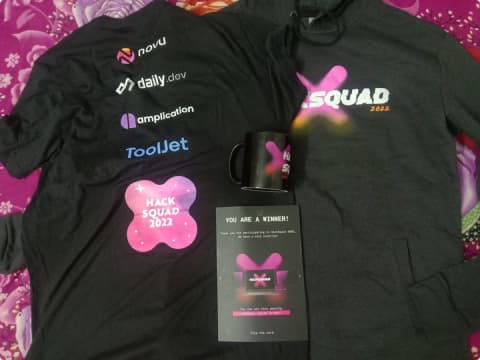 - Although the swags are a little bit big, I am nonetheless honoured to have won HackSquad 2022.